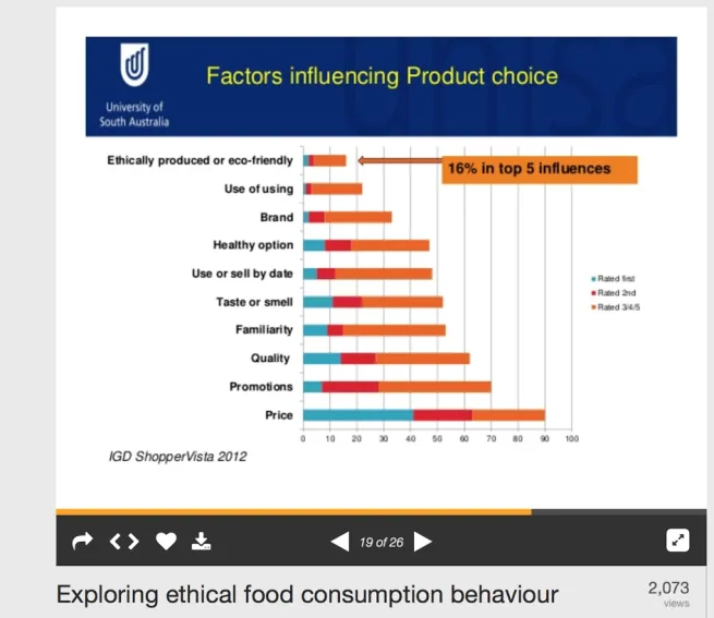 Overall 5-10% of the world's food and beverage category sales are estimated to be spent on ethical food, with the average Australian claiming they buy at least 1 organic item a week, resulting in about 1% of total F&B sales. Not significant, but when you find out this is growing exponentially at 10% p.a. predicted for organics and 50% p.a. for fairtrade in 2015…this is not a trend to take lightly. [Source: Aus. Govt. Rural industries research & development corporation – Ethical Foods report RIRDC Publication No. 11/147]]
