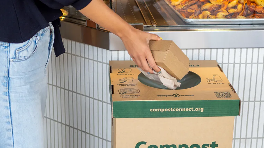 Additionally, composting is a viable option for disposing of food service packaging and its accompanying waste stream. End users like customers can easily dispose of compostable packaging and food waste in one bin, the green one—for commercial composting.