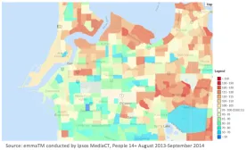 geo-emma data shows ‘Fast Food & Takeaway’ spend overlayed to local areas
