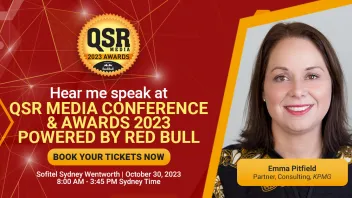 Emma Pitfield, Partner at KPMG will take the stage at the QSR Media Australia Conference & Awards powerd by Redbull.