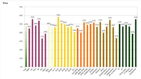 The chart, by BIS Shrapnel, outlines the percentage of fast food/snack food consumers across different demographics who consume pizza. Overall, 47%...