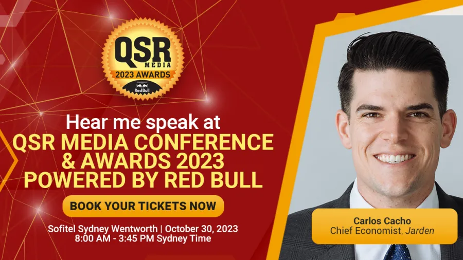 Join Carlos Cacho, chief economist at Jarden at the QSR Media Australia Conference & Awards 2023 powered by Red Bull.