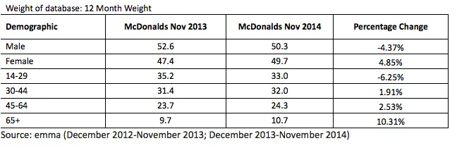 - December 2013-November 2014: 37.5% of the 14+ Australian population have been to McDonalds in the past month