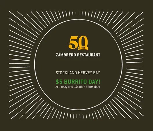 In celebration of Mexican restaurant Zambrero's 50th store, the chain will be offering its signature burritos for $5 this Thursday, 10th July.