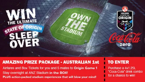 Domino’s has just launched the “Win the Ultimate State of Origin Sleepover” promo. They have partnered with Coca-Cola and ANZ Stadium to reward a fan and five friends a chance to sleepover at the Holden State of Origin on Wedneday, 5th of June, 2013. The winners will be flown to Sydney and transported to the stadium to watch the NSW Game 1 from the corporate box.