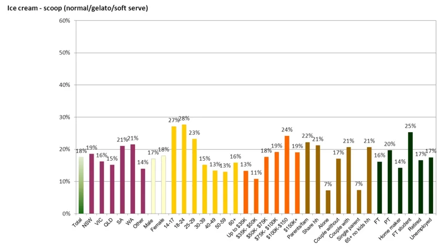 The chart on the right outlines the percentage of Fast Food/Snack consumers that have consumed ice cream-scoop (normal/gelato/soft serve). No statistically significant differences existed.