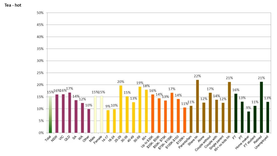 According to BIS Shrapnel, on average, across all Fast Food consumers, only 15% consumed Hot Tea within the last two months.