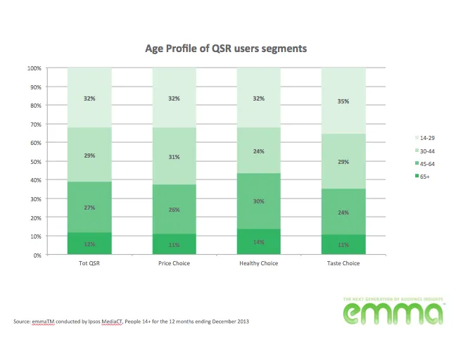 Research by firm Ipsos, shows that young people, specifically those in ages of 14 to 29, are more likely to be QSR visitors.