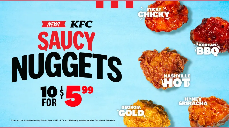KFC launches new saucy chicken nuggets with five flavours. More from USA Today.