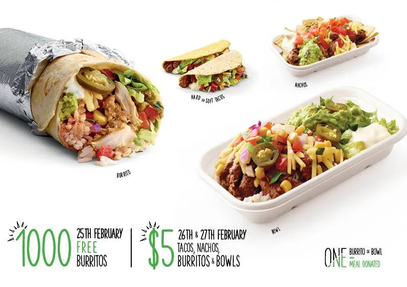 Zambrero to give out 1000 FREE BURRITOS on 25 February, to celebrate the opening of Zambrero Riverside. The celebrations continue on 26th and 27th February with $5 tacos, nachos, burritos & bowls.
