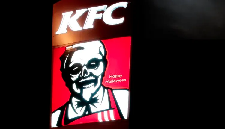 To celebrate Halloween, KFC Pennant Hills changed its store signage for one night and turned the Colonel's face into a scary skull. A first for the Australian chain.