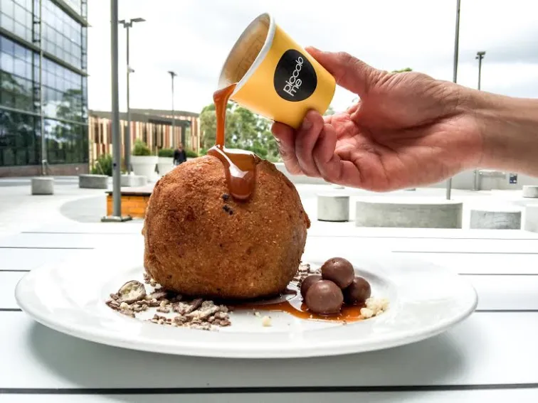 The Fried Maltella is made with nutella fried icecream topped with warm salted caramel sauce and crushed maltesers.