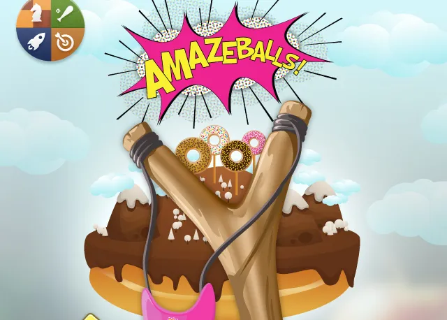The game involves shooting an Amazeball from a slingshot at a donut and character targets to earn points, which customers can share via social media.