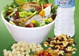 Each deal includes one small fast deli salad of choice, a snack, and a 600ml bottle of Mount Franklin water.