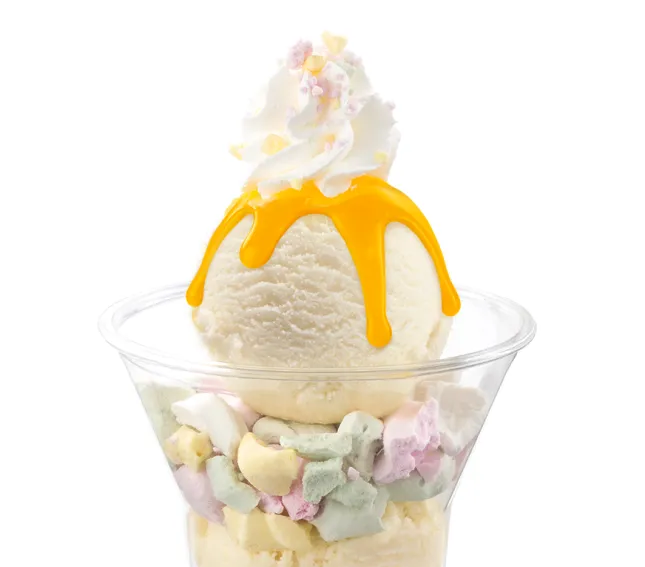 The seven new sundaes included are Choc Rainbow Royale, Caramel Popcorn and Crushed Cookies, and in the Deluxe range, Hot Sticky Date, Lemon Meringue, Hot Apple Crumble and Hot Choc Brownie.