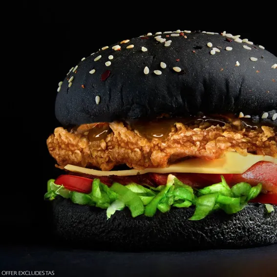 The Zinger Black features black spicy buns, sweet maple mustard sauce and crunchy Zinger fillet.