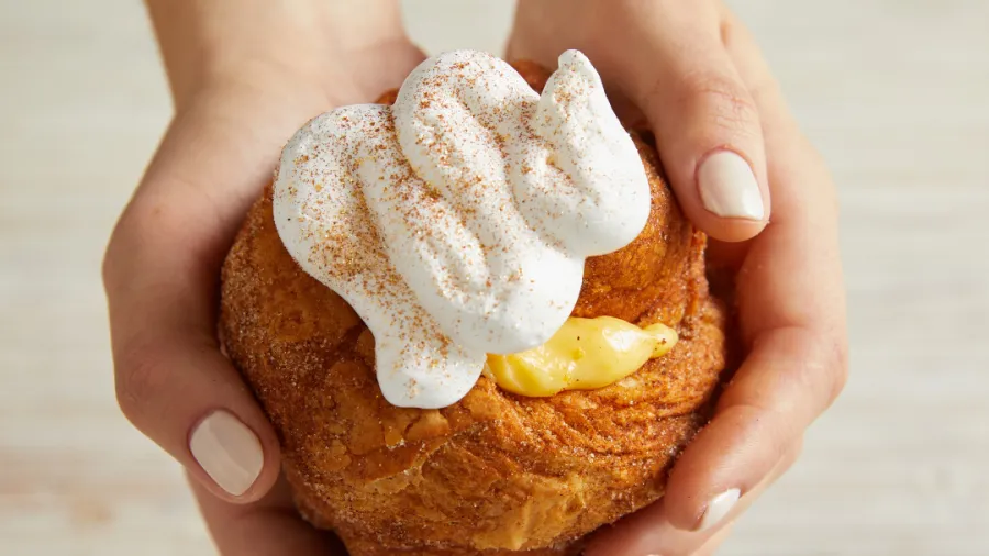 The item, the third addition to the chain’s Fancy Collection, is filled with crème patisserie, lemon curd and orange zest, topped with gooey marshmallow and gold glitter dust.