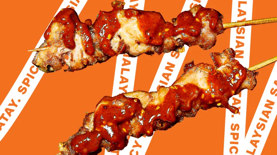 The items consist of two pieces of chicken skewers - either as is or with egg fried rice - and spicy satay chicken noodles.