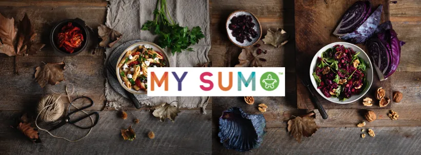 The My Sumo menu allows customers to order meals based on their choice of size, salad base, ingredients, extras, proteins, herbs and spices, and dressing.