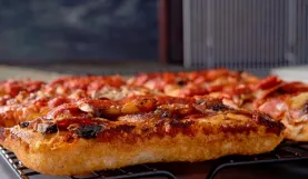 The pizza style has been known for its squared base, thick crust and sauce presentation.
