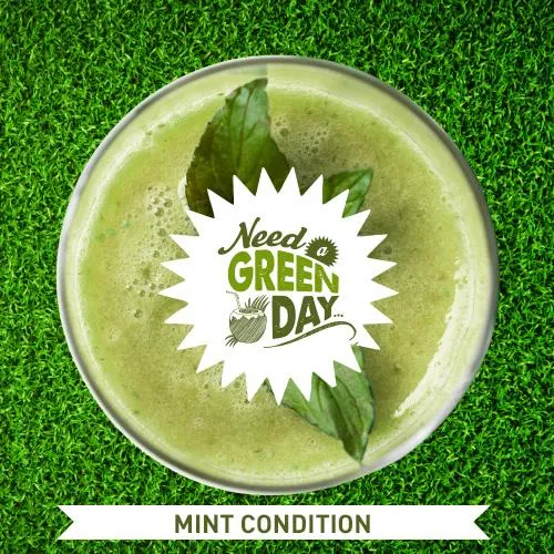 The Grape Escape (617 kJ) is made from spinach, pineapple, green grapes, banana, coconut water and ice. The Caribbean Green (752 kJ) consists of mango, passion fruit, banana, spinach, mango nectar, coconut water and ice. The Mint Condition (378 kJ) is a mix of spinach, mint celery, apple, cucumber and ice. And lastly, the Veggie Garden (401 kJ) combines spinach, cucumber, celery, carrot, orange, chia seeds and ice with.