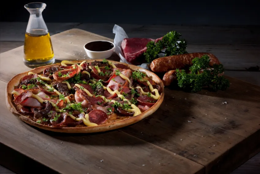 According to Eagle Boys, demand for choice-cut meat drove them to launch the Butcher’s Block, a combination of chorizo, tender steak strips, double pepperoni, bacon rashers and ham, hollandaise sauce and parsley. Ingredients for the Butcher’s Block are supplied by livestock producers in Australia.