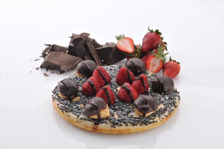 The decadent Profiterizza is a new dessert pizza featuring Bavarian custard, strawberries, chocolate fudge sauce and patisserie crème filled profiteroles. Other new menu items include the Reef & Beef pizza, and Prawn Skewers marinated in tandoori, chilli or garlic sauces.