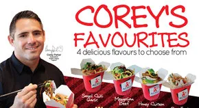 ‘Corey’s Favourites’ features the Sweet Chili Garlic, Mongolian Beef, Honey Chicken, and Pad Thai dishes, with each large box meal priced at $10.