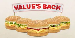 The “Value’s Back” offering is described as Australia’s biggest range of two-dollar chicken cheeseburgers.