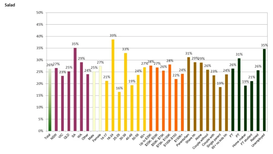 According to BIS Shrapnel, the minority of fast food/snack consumers consumed salad in the last two months (26%).