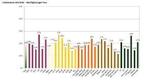 According to BIS Shrapnel over the last 2 months, 19% of fast food/snack consumers consumed carbonated soft drinks that were diet/light/sugar free. Significant differences are noted only between gender, as females are significantly more likely to consume diet/light/sugar free drinks than males. The chart below outlines the percentage of Fast Food/Snack consumers that have consumed carbonated soft drink diet/light/sugar free in the last two months.