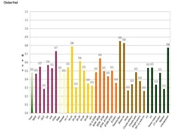 According to BIS Shrapnel, on average, across all fast food consumers, 0.5 fried chicken per person were consumed in the last month.