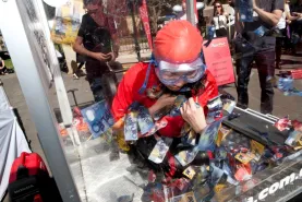 Participants were covered in sticky BBQ sauce and walked away with all the cash they could grab for one minute from a glass box.