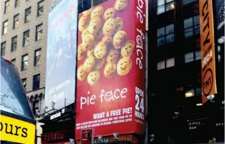 To celebrate the unveiling of the brand’s new billboard in Times Square, New York, Pie Face is giving away over 10,000 free pies.
