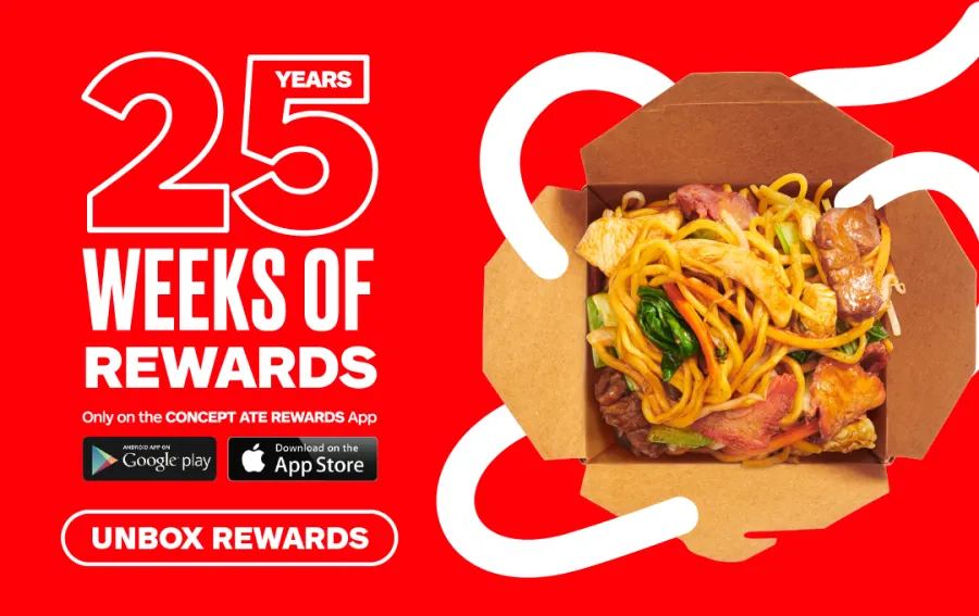 The 25 Years of Noodle Box, 25 Weeks of Rewards campaign starts 7 June and is available exclusively for customers using the Concept Ate Rewards app, which can be downloaded via the App Store or Google Play