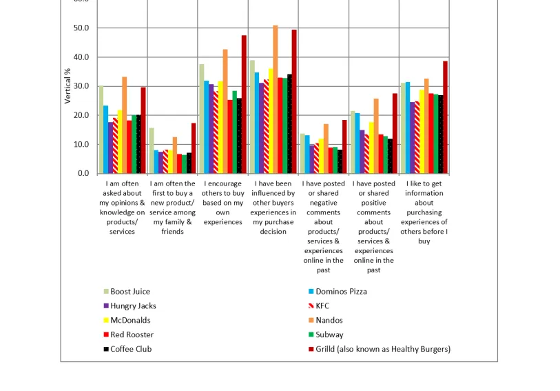 When it comes to influencing others, there are three stand-out QSR’s: Boost Juice, Nandos and Grill’d. This may be influenced by the fact that this sub-group have the lowest average age amongst the top 10. Interestingly, it is also their patrons who like to research prior to any food or dining purchases; when it comes to quick service restaurants, they’re both more particular and more vocal.