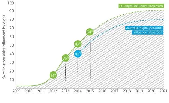 Digital interactions influenced 40% of in-store retail visits in Australia in 2014, according to the new Deloitte report.