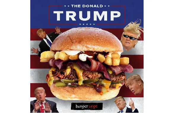 Burger Urge unveiled the Donald Trump burger, rich pulled beef, crispy maple bacon, Mexican cheese, pickles & tomato served with a toupee of fries, Hickory BBQ sauce and truffle mayo. Available for a limited time.