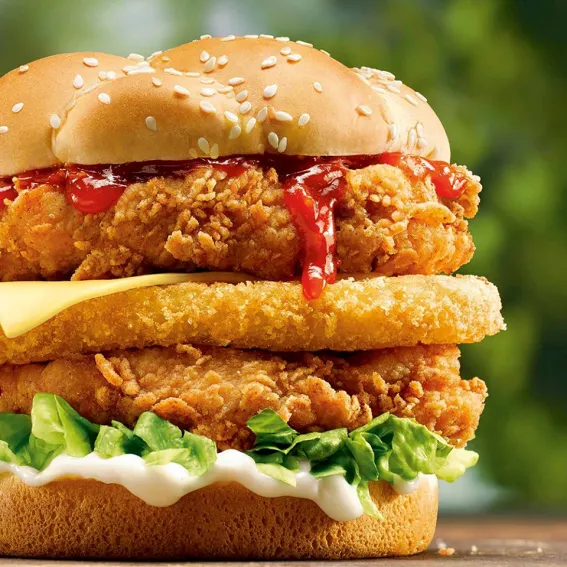 KFC introduced its new Tower Stacker Burger, two Zinger fillets, a hashbrown, lettuce, cheese, mayo and tangy tomato sauce.