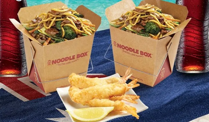 Noodle Box launched the new Aussie Mates Pack, two small Aussie Lamb noodles, four panko prawns and two 300ml drinks, all for $29.95.