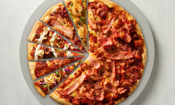 Crust Pizza released its latest The Real Australian Pizza, a mix of Szechuan Chilli Prawn, Meat Deluxe, Tandoori, Mediterranean Lamb, Margherita and Australian Pizza slices in one.