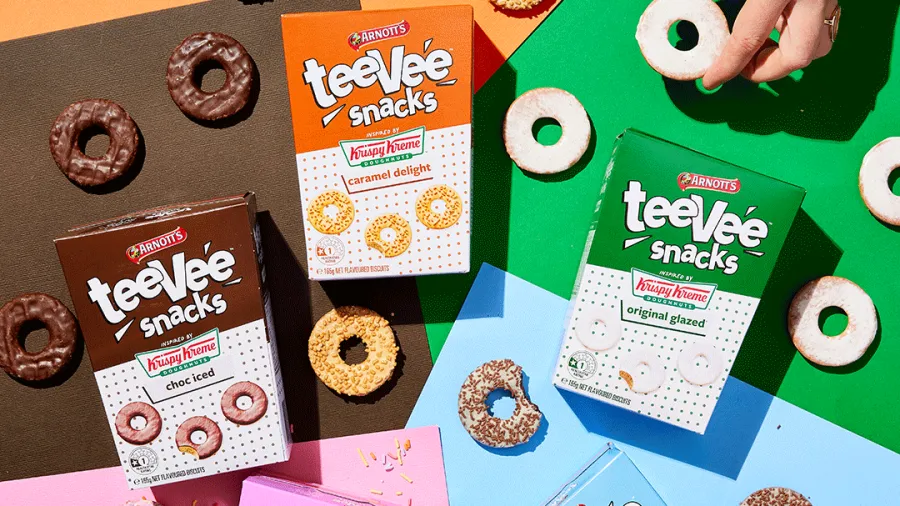 Krispy Kreme is promoting five new teeVee snacks, inspired by its doughnuts.