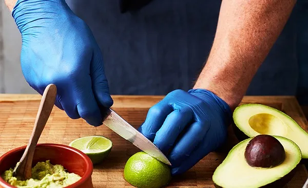 The main purpose of a food service glove is to provide effective barrier protection when handling food. Some things to consider are the glove’s tensile strength, elongation/elasticity, and the acceptable quality level (AQL) for pinholes in the glove (the lower the AQL the better).