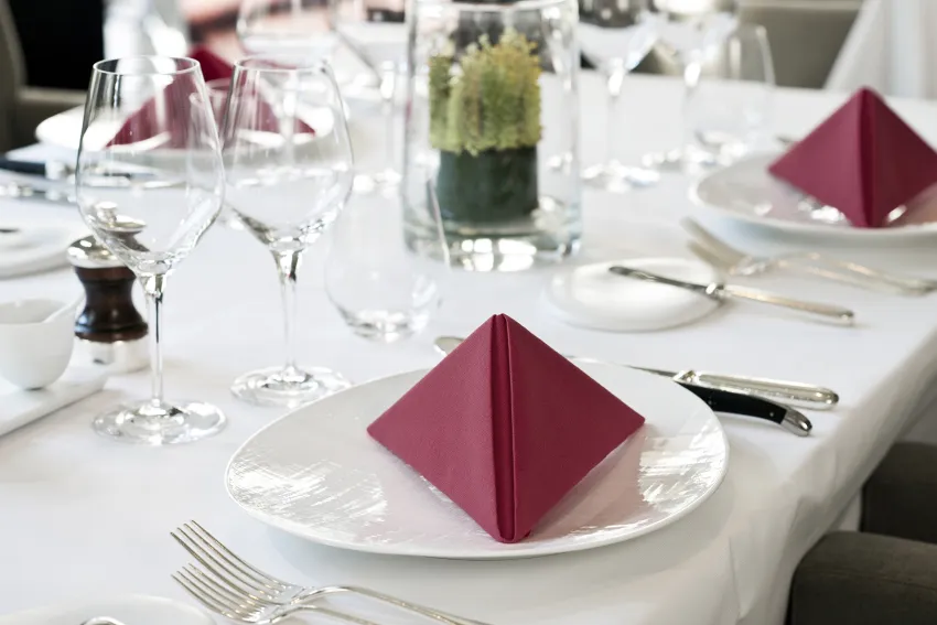 In addition to high teas, the homestead is used for weddings and a wide range of community events. Tork LinStyle quarterfold dinner napkins in burgundy are used for many of these events and big post wedding brunches where, once again, they help deliver quality without fuss.