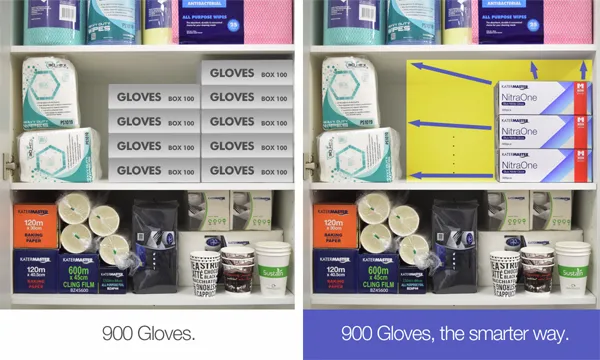 One of the common issues for hospitality businesses is limited storage space, so it is a constant challenge to find the right balance of stock holdings across multiple products. Katermaster has taken this into consideration when creating the packaging for the NitraOne glove – its packaging takes up less than half of the space per glove than a standard vinyl glove.